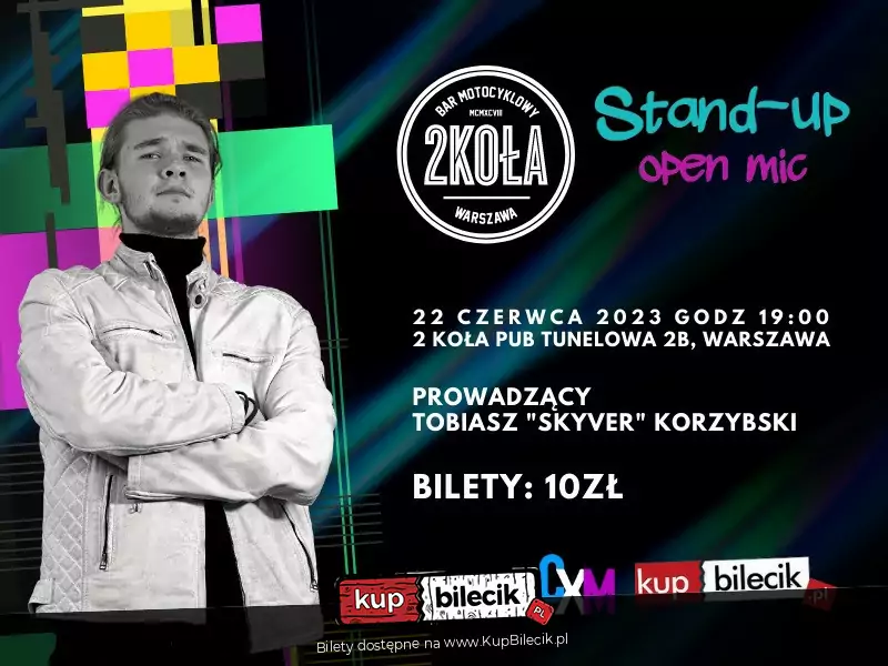 Ciepły okres wakacyjny rozpoczęty open-mic'em w 2 koła pub w Warszawie. Wielu komików, bo to aż 10 i prowadzący Tobiasz Skyver Korzybski. Wydarzenie pełne testowanych materiałów w idealnej cenie bliskiej majonezu w sklepie spożywczym. Naprawdę warto!