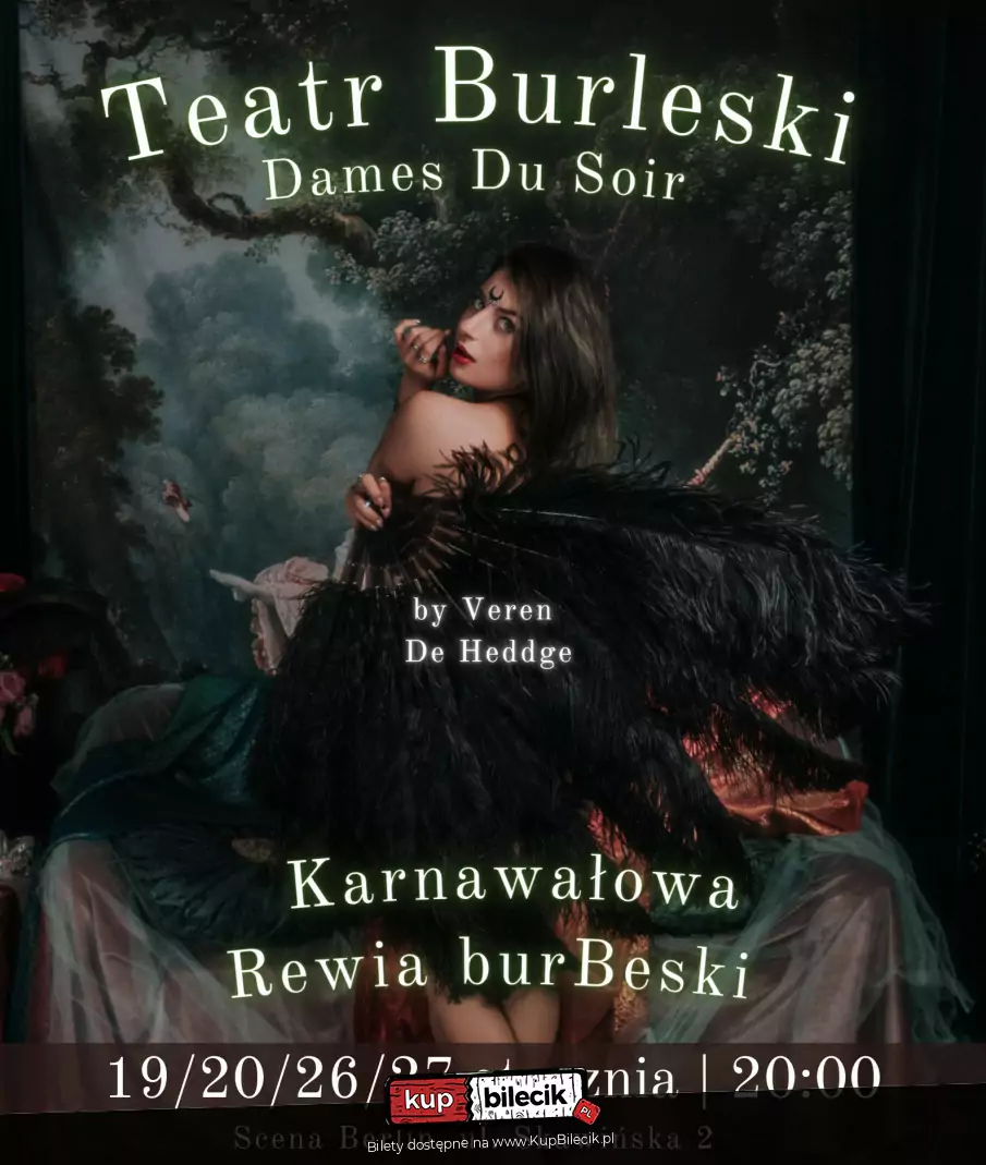 Karnawał to wyjątkowy czas i nietuzinkowa okazja, by celebrować ten moment w fantazyjny oraz pełen blichtru i niezwykłości sposób! Doświadcz magii chwili wraz z jedynym w Polsce Teatrem Burleski, czyli teatru, który sprawi, że przeniesiesz się w czasie i przestrzeni do najbardziej wyrafinowanych chwil. Przekraczając progi naszego teatru zanurzysz się w aurę piękna, wspaniałych kostiumów, sensualnej burleski, tańca i śpiewu, omami Cię szaleństwo barw, cekinów, brokatu, przezroczystego tiulu i strusich piór.