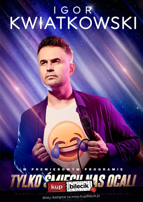 Wyjątkowy artysta kabaretowy Igor Kwiatkowski wraca z solowym, premierowym programem pt. "Tylko śmiech nas ocali"! To spektakl pełen zdziwienia nad światem, zaskoczenia codziennością i zdumienia, którego doświadczamy, obserwując rzeczywistość.