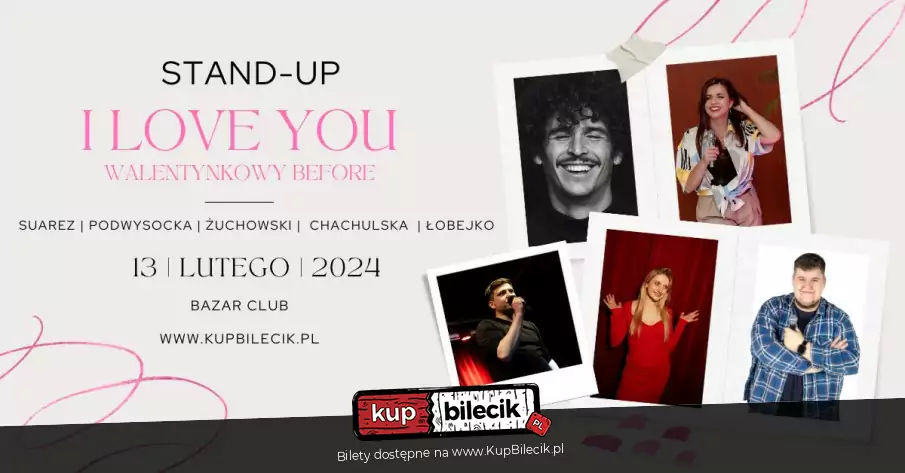 I Love You czyli Walentynkowy Before - tego najprawdopodobniej nie usłyszy nikt, kto przychodzi na stand-up w Walentynki. Jednak na pewno będzie miał możliwość spędzenia wieczoru z pięcioma komikami, którzy z tej okazji zaprezentują swoje materiały. Nie możemy obiecać, że biorąc udział w wydarzeniu zdobędziesz szczęście w miłości, ale jest duża szansa, że każdy Twój śmiech przyjemnie ukuje w serce występujących. W pierwszej części wydarzenia komicy zaprezentują przygotowane programy. Po krótkiej przerwie odbędzie się impro, w którym tematem przewodnim będą Walentynki.