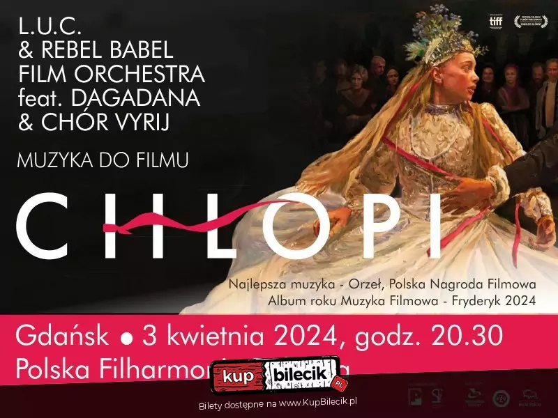 Polska Nagroda Filmowa 2023 (najlepsza muzyka filmowa) i Fryderyk 2024 (najlepsza muzyka filmowa). Prawie 2 miliony widzów w kinach. Polski kandydat do Oscara. Książka nagrodzona Noblem. Łukasz L.U.C. Rostkowski, Rebel Babel Film Orchestra, Dagadana oraz Chór Vyrij zapraszają na koncert prezentujący muzykę z filmu "Chłopi".