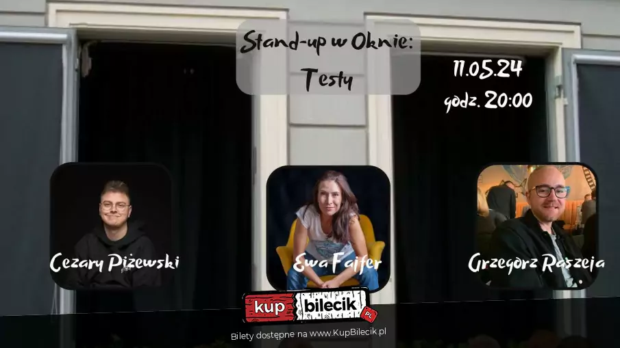 Mamy to. Mamy nowe żarty. Wszystkie ściany w naszych domach, wnętrza samochodów i nawet pająk mieszkający u Ewy w kuchni wyglądali na rozbawionych. Tylko że oni mało ekspresyjnie reagują. Potrzebujemy więc Was, żeby sprawdzić, czy to, co mamy, Was też bawi. Zapraszamy na testy nowych materiałów do Teatru w Oknie, który znajduje się w centrum Gdańska na ul. Długiej. Wystąpią: Cezary Piżewski, Ewa Fafjer oraz Grzegorz Raszeja.