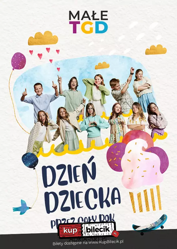 Każdy z nas nosi w sobie szczerą, dziecięcą radość... dlatego warto celebrować ją wspólnie z najmłodszymi! Małe TGD to najpopularniejszy zespół dziecięcy w Polsce wykonujący muzykę pop z ponadczasowym przesłaniem. Grupa koncertuje od wielu lat, a w 2024 roku, po raz pierwszy w historii, przygotowała niesamowite widowisko muzyczne i wyruszyła w wielką trasę koncertową. Na widzów czeka niezapomniany show, który udowodni, że Dzień Dziecka może trwać cały rok!