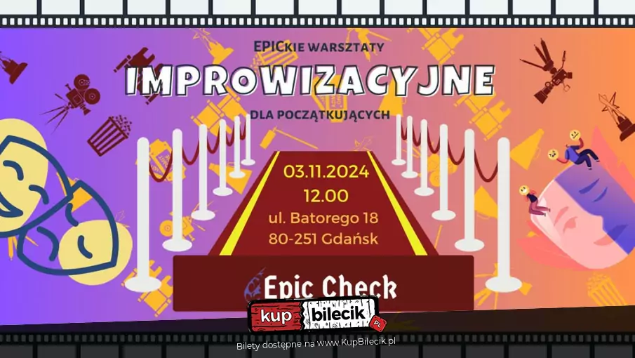 EPICkie Warsztaty Improwizacyjne zaczynają się z powrotem od nowego sezonu! EPICkie Warsztaty Improwizacji dla Początkujących: Wybuchnij śmiechem! Chcesz być gwiazdą sceny bez żadnego scenariusza? A może po prostu chcesz nauczyć się szybko reagować w każdej sytuacji? Nasze EPICkie Warsztaty Improwizacji to Twoja przepustka do świata spontaniczności i nieograniczonej kreatywności! Co drugą sobotę od września spotykamy się, żeby razem tworzyć niesamowite historie, bawić się słowem i odkrywać w sobie ukryte talenty. Nie musisz być komikiem, żeby się dobrze bawić!