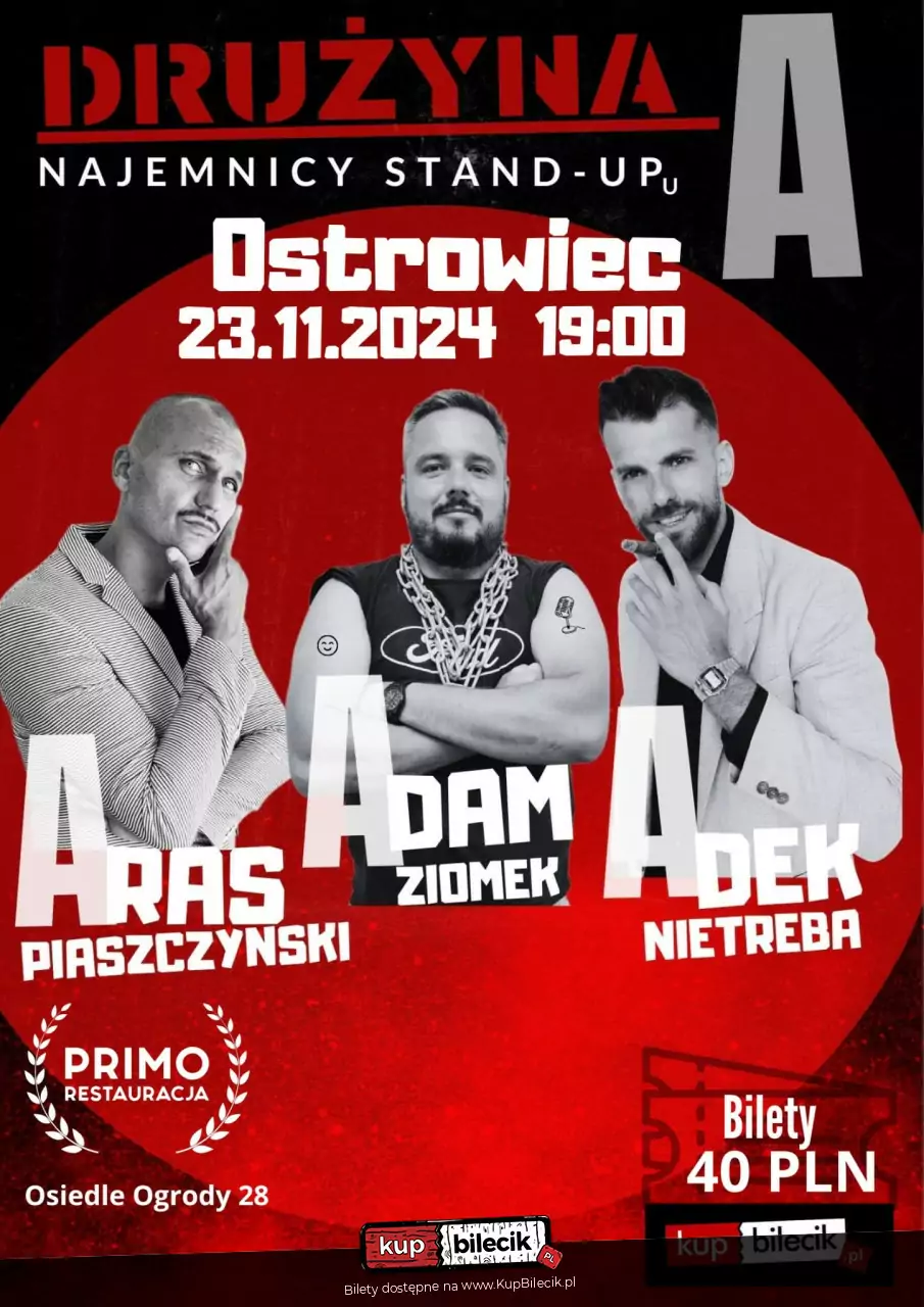 Przygotuj się na wyjątkową dawkę humoru, ostre żarty i niezapomniane występy komików, którzy rozbawią Cię do łez. Drużyny A - Najemnicy Stand-upu! To będzie wieczór pełen humoru, śmiechu i niezapomnianych wrażeń. Przygotuj się na najlepszy stand-up w wykonaniu utalentowanych komików, którzy rozbawią Cię do łez. Zapraszamy na wieczór pełen śmiechu. Gwarantujemy wspaniałą atmosferę i mnóstwo dobrego nastroju.