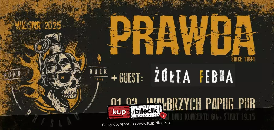 Prawda - wrocławska formacja założona latem 1994 roku przez Skutera i Melona. Swój debiutancki materiał, "Biologia z drugiej strony" zarejestrowała w grudniu 1994 roku. Przez pierwsze kilkanaście lat funkcjonowania zespół nagrał pięć regularnych albumów, kilka ep-ek, album kompilacyjny i wiele składanek. Prawda w trakcie 30 lat z czego ponad 20 lat na scenie zagrała kilkaset koncertów u boku wielu kapel które były dla nas ważne a niekiedy inspirowały nas swoją twórczością (Dead Kennedys, Cockney Rejects, Hanson Brothers, UK Subs, GBH, Chealsa, Sham 69, Angelic Upstarts czy Vibrators). Dwukrotnie zaliczony Woodstock na dużej scenie w roku 1999 i 2006 i czterokrotnie też na scenie Pokojowej Wioski Kriszny w 2006, 2014 obchodząc XX Lecie, w 2017 i 2018. Na przełomie czerwca i lipca 2016 w zupełnie nowym odświeżonym składzie zespół rozpoczyna próby i już w październiku wyjeżdża w trasę koncertową która ma zespolić nowy skład a już od połowy następnego roku zaczyna rejestrować materiał na nowy album - pierwszy od 10 lat. To ewenement na skalę tego kraju, zespół w pierwszym roku po reaktywacji zagrał niemal 50 koncertów i nagrał nową płytę. Nie ma odcinania kuponów i odgrzewania starych kotletów. Na dzień dzisiejszy to zupełnie inny niż kiedyś zespół, całkiem nowa energia. Prawda to obecnie jeden z najprężniej działających punk rockowych formacji w kraju. W sierpniu 2023 Prawda wchodzi do studio i zaczyna rejestrować nowy i tym razem zupełnie inny album który ukazał się na początku 2024 roku. Ma być zamknięciem pewnego etapu po 30 latach na scenie i swoistym powrotem do korzeni.