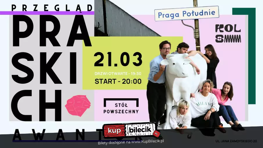 Przegląd Praskich Awantur przygotują improwizatorzy i improwizatorki z Kolektywu Śmiesznie. Co miesiąc prześwietlają Mokotów, bywają na Żoliborzu, dobrze się znają na Płocku i Trójmieście. Korzystają z wielu sztuk, od improwizacji po stand-up. Kochają absurd z wzajemnością.