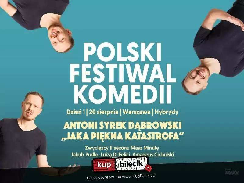Czyli finaliści drugiego sezonu "Masz Minutę" - zdobywcy głównych nagród, każdy z nich zaprezentuje pełnowymiarowy set łączący świeże spojrzenie z nietypową różnorodnością. - Wieczór zwieńczy Antoni Syrek-Dąbrowski z godzinnym, autorskim programem "Jaka Piękna Katastrofa" - występ, który łączy błyskotliwe puenty z niebanalną refleksją i wszechstronnym kunsztem jednego z najbardziej doświadczonych komików w Polsce.