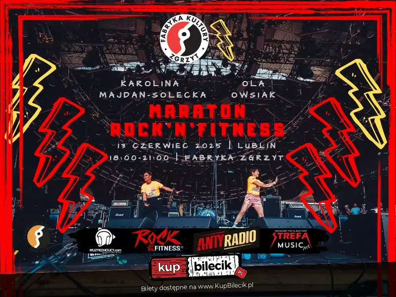 To będzie wieczór pełen mocy, pasji i rockowej energii! Karolina Majdan-Solecka, twórczyni Rock'n'Fitness zaprasza na niezwykły maraton fitnessowy, który połączy intensywny trening z wyjątkowym klimatem - na pograniczu sportu i muzycznego szaleństwa. Do Karoliny dołącza Ola Owsiak - trenerka, promotorka kultury fizycznej. Dziewczyny, które współpracują razem przy wydarzeniach WOŚP i Pol'and'Rock poprowadzą dla Was 3-godzinną podróż przez siłę, energię i rockowy vibe!