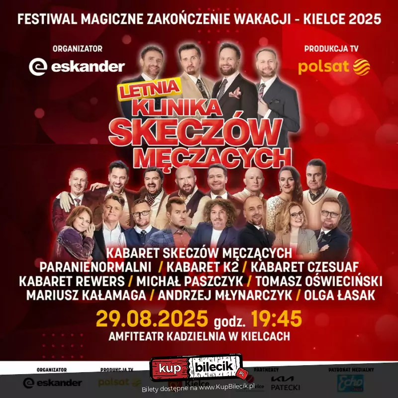 Dołączcie do nas tego lata i przekonajcie się, kto w tym roku wystąpi w ramach Letniej Kliniki Skeczów Męczących! Szczegóły programu i nazwiska artystów ujawnimy już wkrótce - bądźcie gotowi na humor, który uzdrawia! Bilety już w sprzedaży! Zarezerwujcie swoje miejsce online i przeżyjcie wakacyjną ucztę śmiechu w stylu KSM.