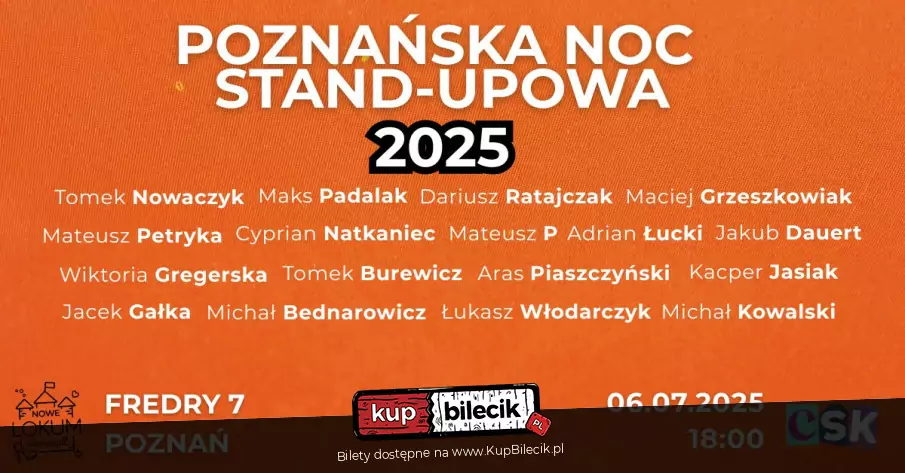 Centrum Sztuk Komediowych i Stand-up Poznań ma zaszczyt zaprosić Was na święto poznańskiej komedii jakim będzie Poznańska Noc Stand-upowa!