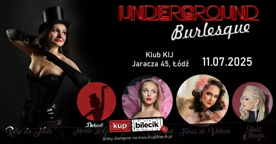 Przenieś się w świat mrocznego kabaretu na 53. Wieczór Burleski w Łodzi! Brokat, pióra, cekiny i hipnotyzujący klimat klubu Kij! Po hucznej 50. edycji przyspieszamy tempo i zapraszamy na niezapomniany spektakl "Midnight Vaudeville" z niesamowitymi artystami: