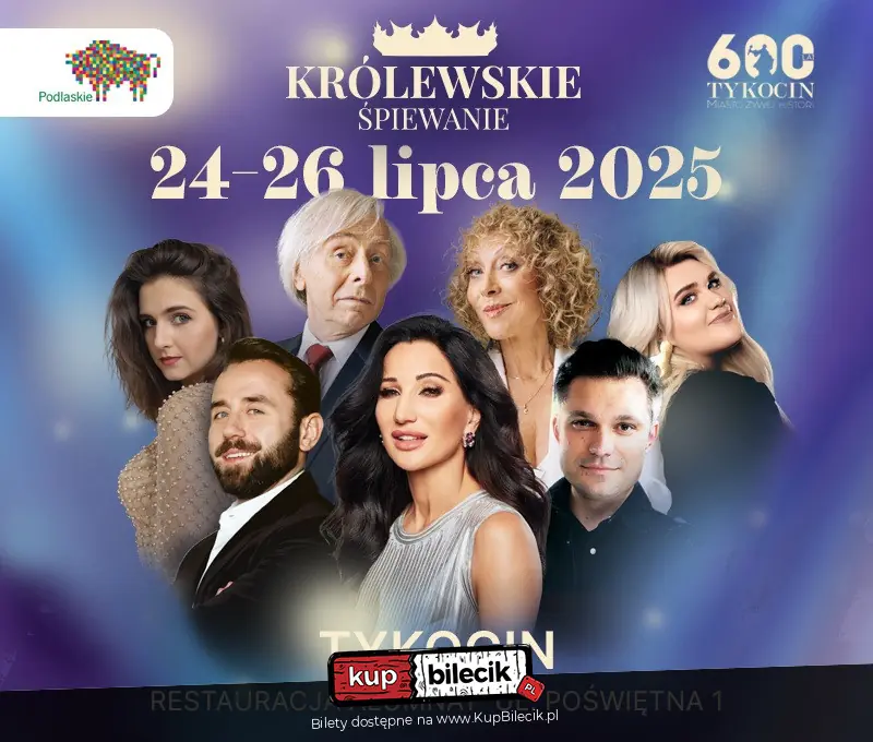 Królewskie Śpiewanie 2025 - Zapraszamy na trzynastą edycję Królewskiego Śpiewania w Tykocinie, która co roku staje się integralną częścią kulturalnego krajobrazu Podlasia i Polski! To wyjątkowe wydarzenie, będące świadectwem nieustannej pasji i innowacji, ponownie otworzy przed Państwem świat muzyki w sercu Tykocina. Przygotujcie się na niezapomniane wieczory pełne dźwięków i emocji!