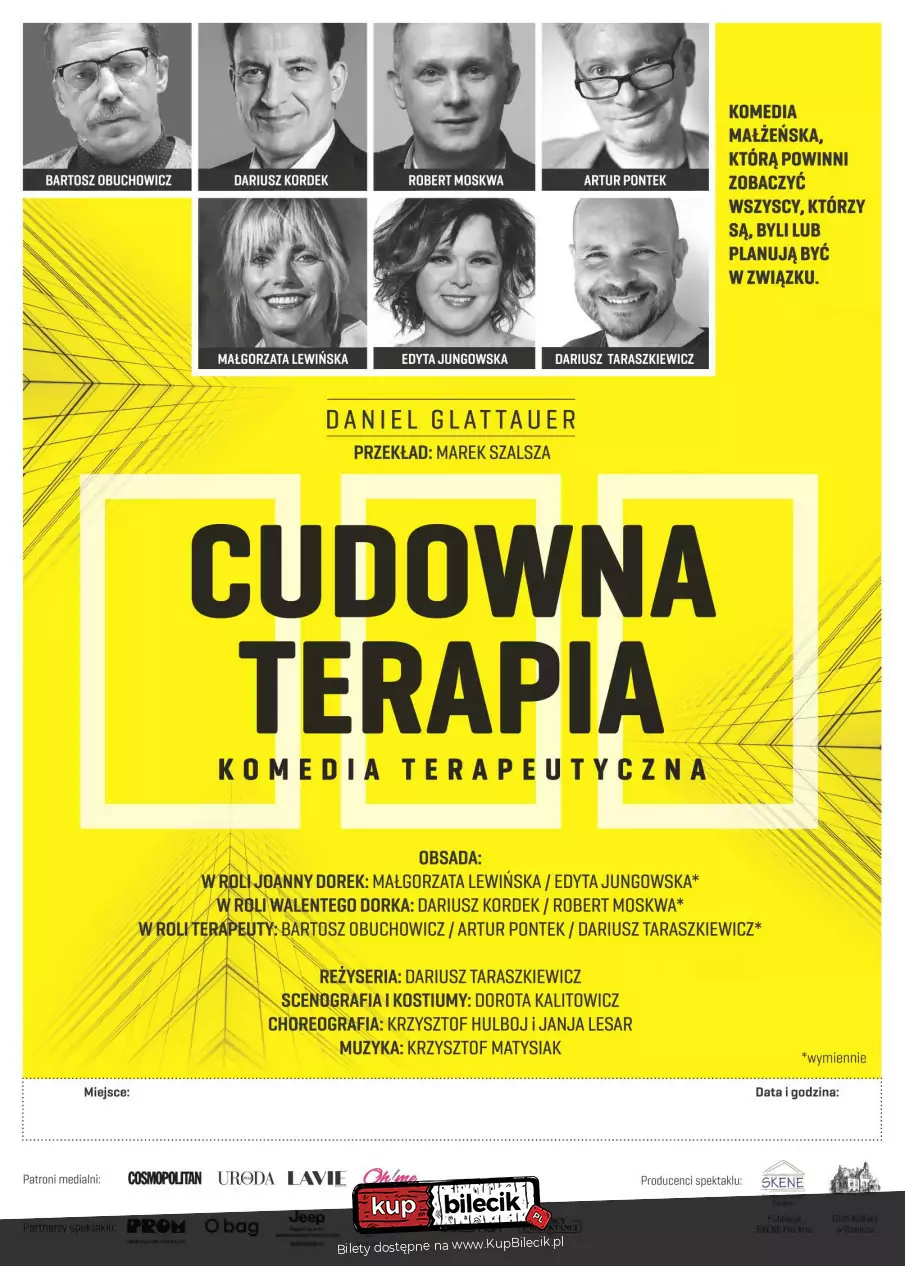 Spektakl zachwyca nie tylko inteligentnym tekstem i dynamiczną reżyserią Dariusza Taraszkiewicza, ale także wybitnymi kreacjami aktorskimi. "Cudowna terapia" to gwarancja wieczoru pełnego śmiechu i refleksji, które pozwolą Ci spojrzeć na własne życie z dystansem i humorem! Zapraszamy do teatru na spotkanie z bohaterami, którzy pokażą, że nawet w najtrudniejszych momentach warto walczyć o miłość. Sprawdź repertuar i zarezerwuj bilety na spektakl "Cudowna terapia"!