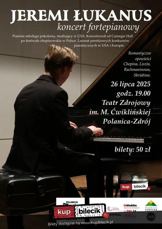 Jeremi Łukanus, polski pianista urodzony w Dusznikach-Zdroju, jest laureatem XIII Międzynarodowego Konkursu Pianistycznego im. Fryderyka Chopina w Hartford oraz Konkursu Stanowego MTNA w Tennessee (kategoria Młody Artysta) w 2022 roku. Ostatnio zdobył pierwszą nagrodę na konkursie American Protégé Concerto Competition 2024 oraz czwartą nagrodę na Międzynarodowym Konkursie im. F. Liszta w Los Angeles w najwyższej kategorii. Jeremi uczęszczał do Szkoły Muzycznej w Kłodzku oraz Ogólnokształcącej Szkoły Muzycznej im. Jadwigi Maliszewskiej w Poznaniu. W Maju 2025 ukończył studia licencjackie na kierunku Bachelor of Music in Piano Performance na uczelni East Tennessee State University w Johnson City, TN USA i obecnie przygotowuje się do rozpoczęcia studiów magisterskich na renomowanej uczelni Peabody Institute of the John Hopkins University w Baltimore, MD USA w studiu Alexandra Shtarkmana. Aktywnie uczestniczył w kursach mistrzowskich z wieloma renomowanymi artystami, takimi jak Marc-André Hamelin, Boris Berman, Alexander Kobrin, Boris Slutsky, Sofya Gulyak i Yakov Kasman. Jeremi zadebiutował w Carnegie Hall w Nowym Jorku w grudniu 2024 roku. Od swojego pierwszego pełnego recitalu w prestiżowym Dworku Chopina w Dusznikach-Zdroju w 2019 roku, co roku wraca tam, aby wystąpić. Kilkukrotnie koncertował na Międzynarodowym Festiwalu Chopinowskim "Lato z Chopinem" w Busku-Zdroju a swój talent przedstawił na scenach artystycznych w Polsce, Niemczech, Belgii, Włoszech, Hiszpanii oraz Stanach Zjednoczonych.