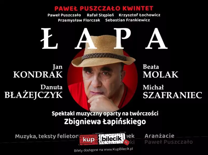 Łapa to spektakl muzyczny, oparty na piosenkach z muzyką Zbigniewa Łapińskiego, ale także tych piosenkach, do których Kompozytor napisał pół roku przed śmiercią muzykę i teksty.