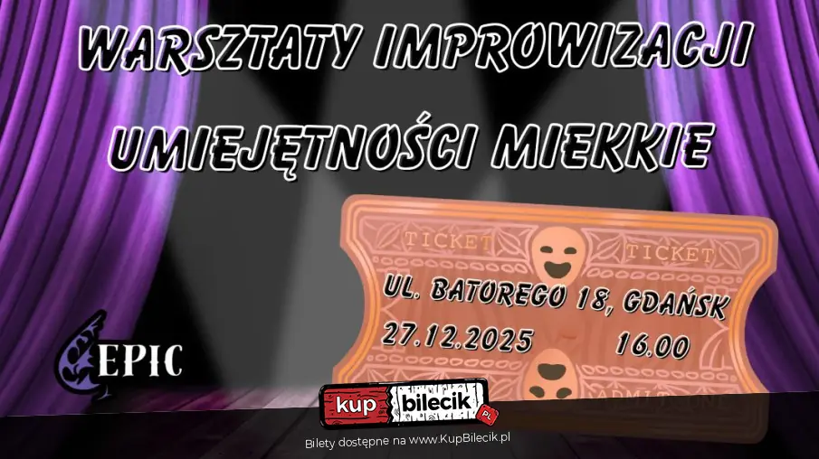 Chcesz być gwiazdą sceny bez żadnego scenariusza? A może po prostu chcesz nauczyć się szybko reagować w każdej sytuacji? Nasze EPICkie Warsztaty Improwizacji to Twoja przepustka do świata spontaniczności i nieograniczonej kreatywności! Co drugą sobotę od września spotykamy się, żeby razem tworzyć niesamowite historie, bawić się słowem i odkrywać w sobie ukryte talenty. Nie musisz być komikiem, żeby się dobrze bawić!