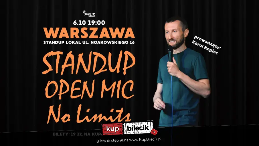 Już w poniedziałek 6.10 o 19:00 odbędzie się standup - open mic - wydarzenie, w trakcie którego doświadczeni i początkujący komicy opowiadają nowe żarty. Udział zapowiedzieli bardzo znani komicy.