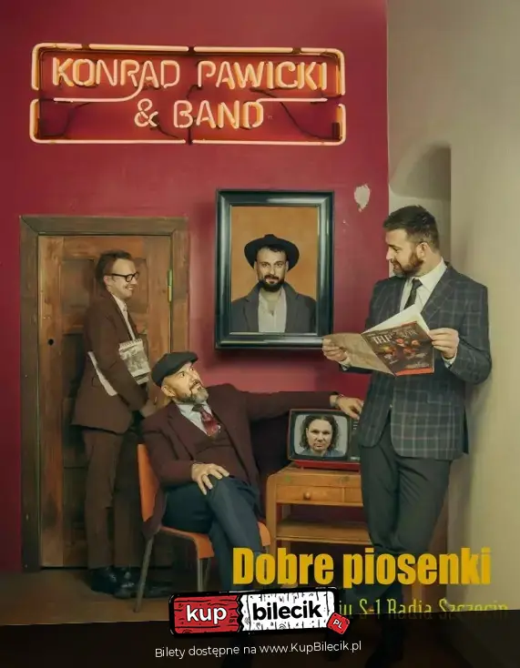 Konrad Pawicki ze swoim zespołem zabiorą słuchaczy do świata emocji. Znakomite autorskie teksty i kompozycje wymykające się gatunkowym schematom. Słychać tu jazz, rocka, echa chanson i piosenki literackiej. Jest energia i żywioł ale także delikatność i melancholia. Wszystko to niesione fenomenalnie zagraną muzyką bo towarzyszący świetnie śpiewającemu aktorowi instrumentaliści są najlepszymi specjalistami w swoim fachu! Jeśli lubisz dobre piosenki, to propozycja dla Ciebie.