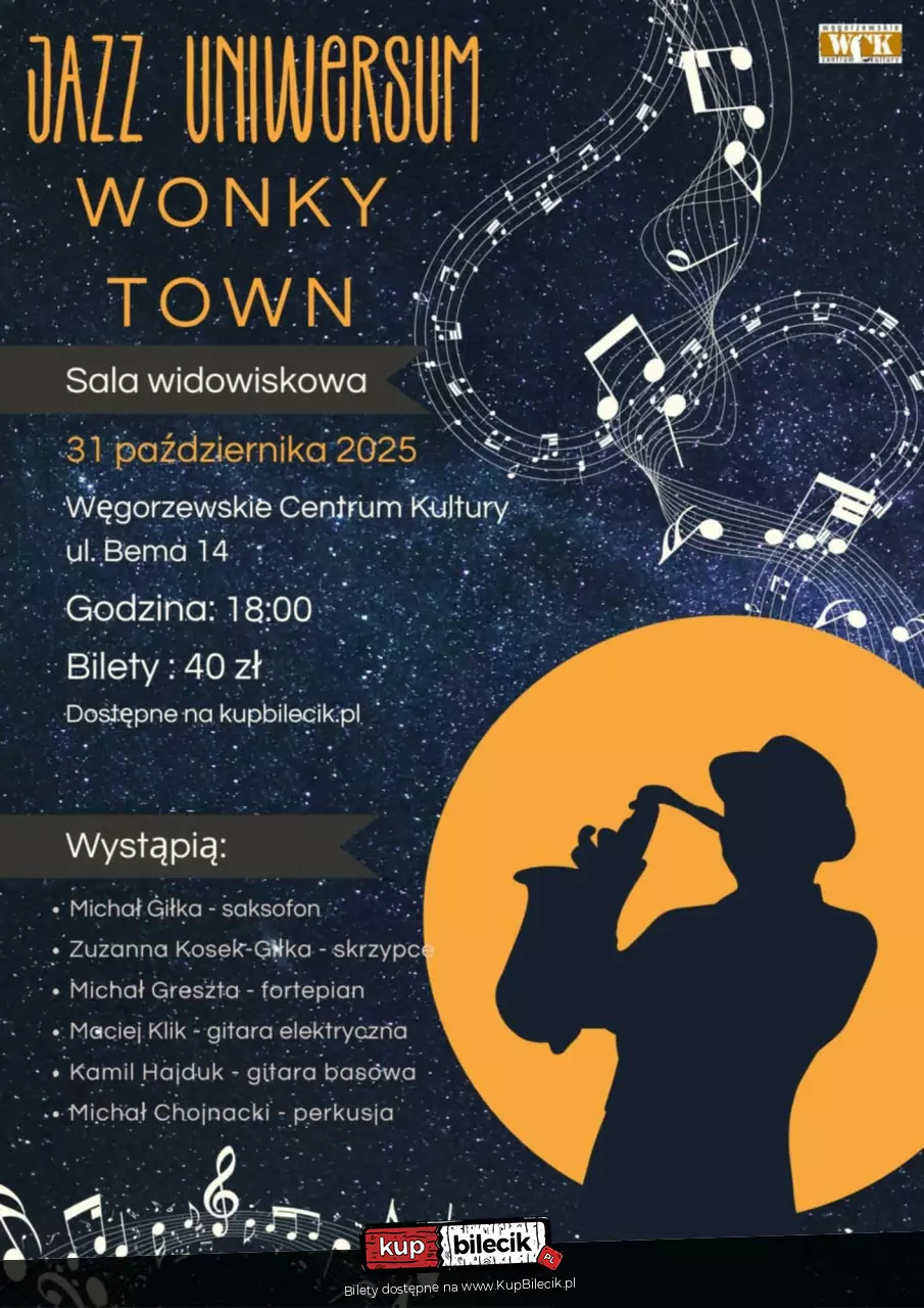 Wonky Town - zespół jazzowo-popowy, choć tak naprawdę ciężko jest jednoznacznie określić stylistykę muzyczną, w której ów skład się porusza. Złożony z młodych muzyków o ogromnej pasji, niesamowitej charyzmie i nieustannej chęci w rozwoju. W skład zespołu wchodzą: