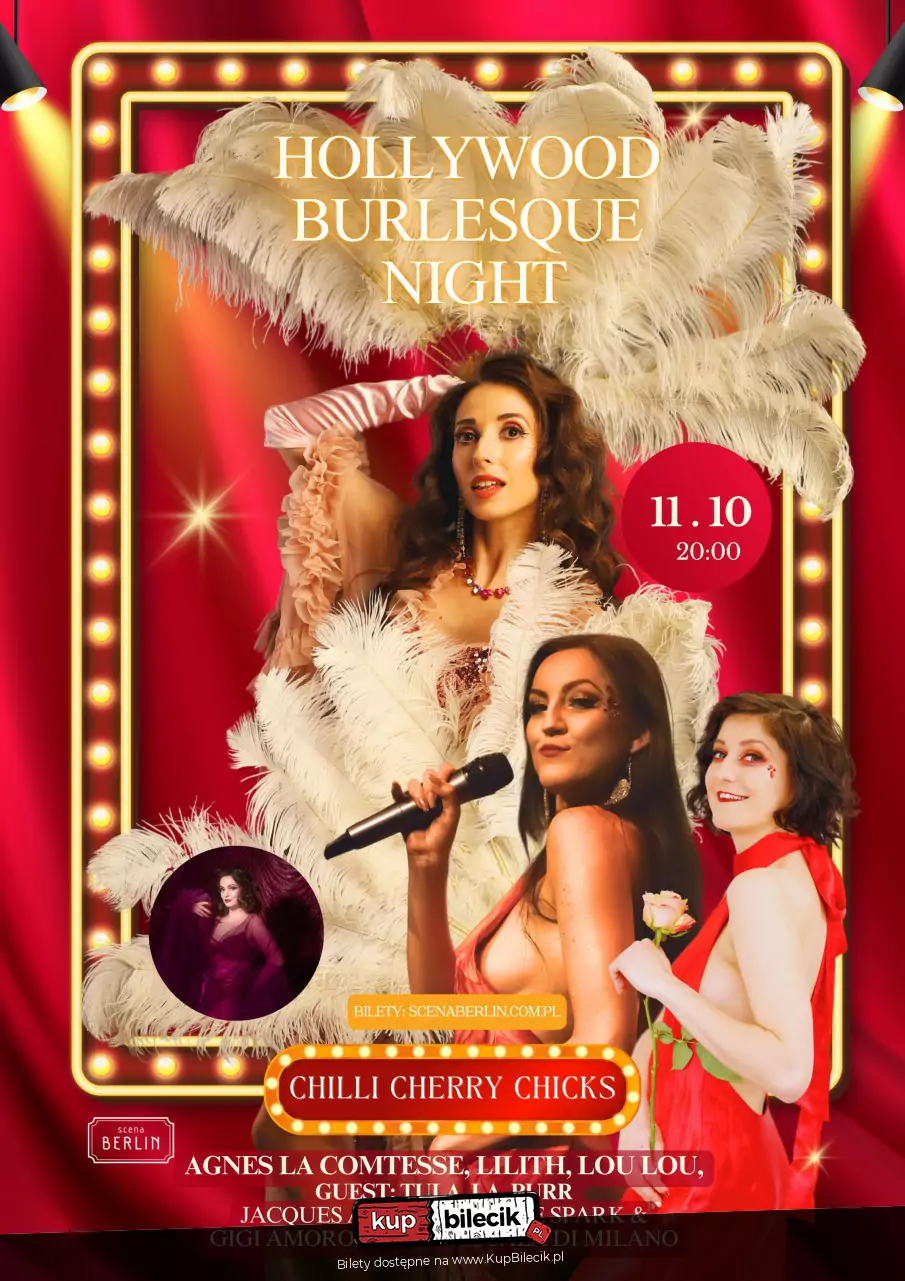 Zapraszamy na magiczne wieczory w Scena Berlin - jedynym w swoim rodzaju Teatrze Burleski w Krakowie. Nasze wydarzenia łączą w sobie sztukę burleski, kabaretu, tańca i muzyki na żywo, tworząc niezapomniane show pełne elegancji, humoru i zmysłowości. Każde spotkanie na naszej scenie to wyjątkowe doświadczenie, które przenosi publiczność w świat artystycznych emocji i oryginalnych występów.
