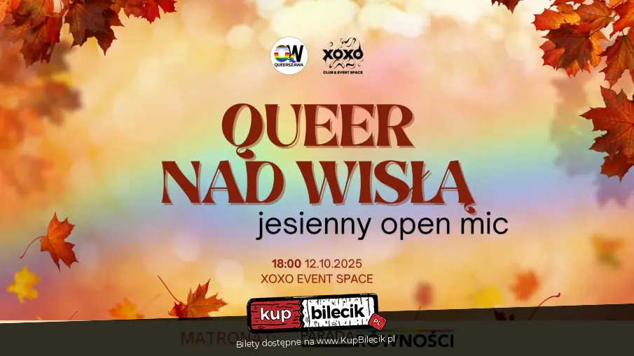Jesień nadchodzi, ale my nie zwalniamy tempa! Zapraszamy Was na kolejną odsłonę cyklu QUEER NAD WISŁĄ - ponownie w formie Open Micu! To będzie przestrzeń, żeby queerowe (i nie tylko) głosy komedii mogły w pełni wybrzmieć przed najlepszą publiką. Czeka Was wieczór pełen różnorodności, śmiechu, emocji i queerowej energii, której nad Wisłą nigdy nie jest za dużo. Weź znajomych, przyjdź samx, daj się ponieść atmosferze i pokażmy razem, że queer zawsze ma głos! Open mic poprowadzą dla Was Agnieszka Matan i Maciek Przygoda ze Stowarzyszenia Queerszawa.