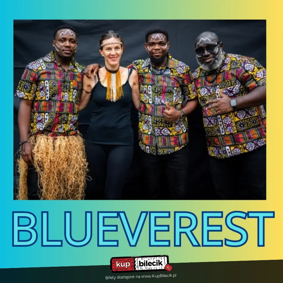 Blueverest - afro-jazz & world music live! Polsko-kameruński zespół Blueverest to prawdziwa eksplozja energii scenicznej i brzmień świata. Ich muzyka to mieszanka world music, african jazz, folk i easy listening, w której spotykają się gorące rytmy Kamerunu, afrykańska improwizacja i europejska melodyka. Twórcami projektu są Marta Wilgosz - wokalistka, kompozytorka, pedagog i animatorka kultury - oraz Michel Bekombo, kameruński muzyk, perkusista, wokalista i kompozytor. Razem stworzyli unikalny styl, w którym spotykają się dwa kontynenty, a do zespołu dołączyli utalentowani instrumentaliści: Romeo Minkoulou (klawisze, marimba) i Francis Gafe (gitara basowa).