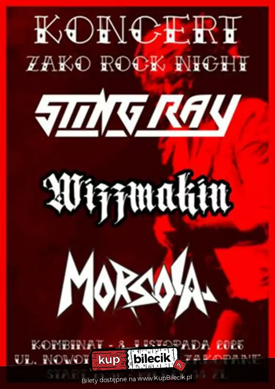 Sting Ray Wizzmakin Morsola Zako Rock Night - Ten koncert będzie wyjątkowy ponieważ to podsumowanie dotychczasowej działalności zespołu, a przede wszystkim premiera debiutanckiej płyty "Gutter Rats of Rock and Roll". Spotkajmy się na urodzinowym koncercie zespołu.
