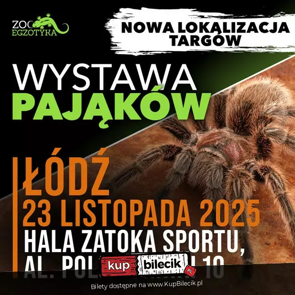WYSTAWA PAJĄKÓW odbędzie się podczas targów ZooEgzotyka. Kupując bilet na wystawę możesz również zwiedzić targi bez dodatkowych kosztów. Na targach będzie możliwość zakupienia również pająków, zaopatrzenia się w terraria i cały sprzęt niezbędny do ich hodowli. Wystawa jest w pełni bezpieczna i przystosowana dla widzów w każdym wieku. Jeden bilet - dwie imprezy! Rozpocznij swoją przygodę z pająkami i przełam swój strach!