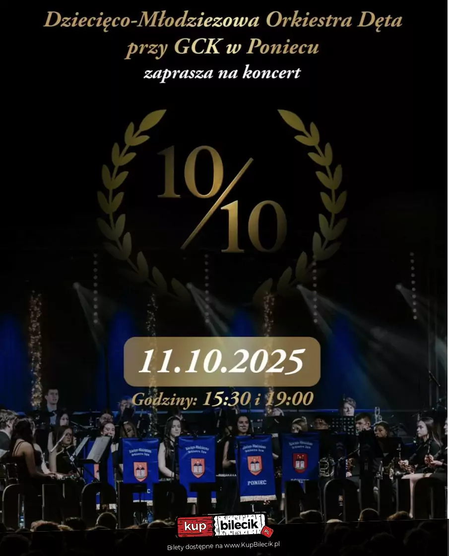 Z ogromną radością i dumą ogłaszamy, że już: 11 PAŹDZIERNIKA 2025 odbędzie się KONCERT 10/10. Na scenie wystąpi: Dziecięco-Młodzieżowa Orkiestra Dęta GCK w Poniecu. Zespół, który od lat zachwyca publiczność nie tylko talentem, ale i niezwykłą energią! Skąd nazwa 10/10 ? Dla stałych widzów Koncertów Orkiestry to będzie muzyczna podróż, którą doskonale znają i kochają!