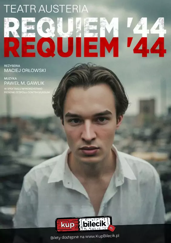 Zapraszamy na wyjątkowy spektakl w reżyserii Macieja Orłowskiego, o cywilach Powstania, ich walce o przetrwanie, szaleństwie i nadziei, która jest silniejsza od śmierci. Wzruszająca muzyka Pawła M. Gawlika i pieśni zespołu Contra Mundum do słów poetów Powstania Warszawskiego: Tadeusza Gajcego, Krzysztofa Kamila Baczyńskiego i Józefa "Ziutka" Szczepańskiego i innych "Kolumbów Rocznik 20", dopełniają tę wyjątkową impresję. "Requiem '44" to nie tylko spektakl, to akt pamięci. Przyjdźcie, usiądźcie i posłuchajcie opowieści, która tak długo czekała na to, by ją wypowiedzieć.