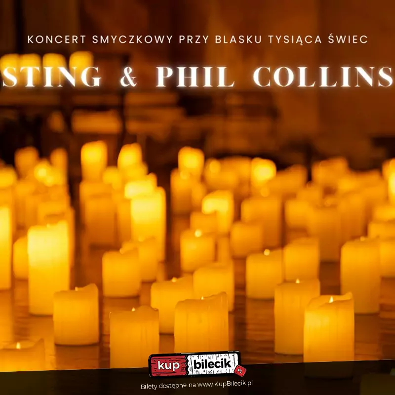 Candle Live Music zaprasza na niezwykły koncert instrumentalny w nastrojowym blasku tysiąca świec. Przenieś się do świata muzycznej elegancji i ponadczasowych brzmień podczas wyjątkowego wieczoru poświęconego dwóm legendom - Stingowi i Philowi Collinsowi. W blasku tysięcy świec, w kameralnej atmosferze, zabrzmią utwory, które na zawsze zapisały się w historii muzyki rozrywkowej. W repertuarze znajdą się utwory, które od dekad budzą emocje i łączą pokolenia. Całość zostanie wykonana przez zespół znakomitych muzyków, którzy połączą elegancję klasycznego brzmienia z nowoczesnymi aranżacjami, tworząc niepowtarzalne widowisko muzyczne. To koncert, który pozwoli na chwilę oddechu od codzienności, zanurzenie się w nastroju romantyzmu i nostalgii oraz odkrycie na nowo piosenek, które nigdy się nie starzeją.