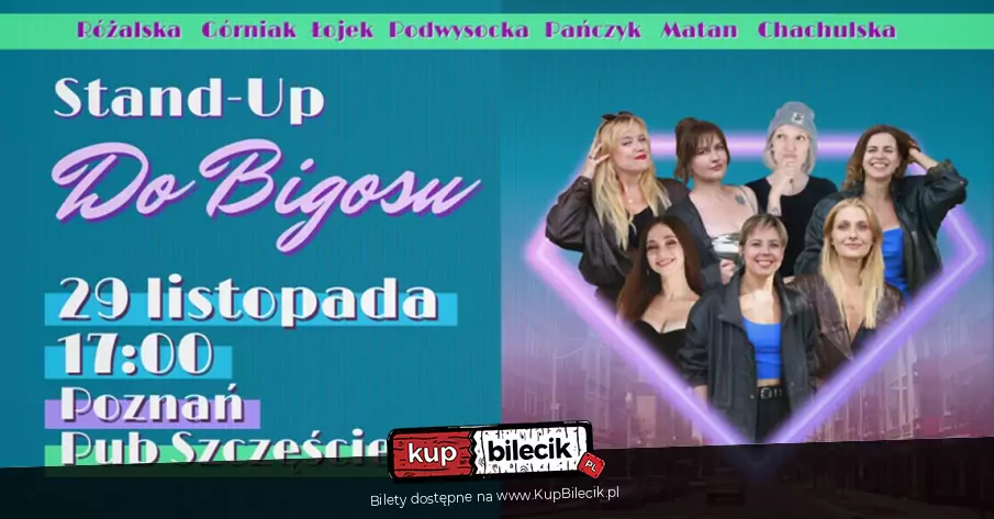 Wieczór Komediowy z całkowicie kobiecym składem - przekornie nazwanym "Do Bigosu!" Nowy sezon, nowe żarty! Komiczki, które będą Was rozśmieszać to jedne z najbardziej różnorodnych i fascynujących kobiecych głosów, które wnoszą na scenę świeżą i niepowtarzalną perspektywę.