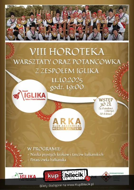 Chcemy Was serdecznie zaprosić na pierwszą w tym roku akademickim horotekę - potańcówkę bałkańską. W ten niezwykły świat tańców bałkańskich przeniesie nas zespół IGLIKA, który prowadzi Kasia Witek - absolwentka filologii słowiańskiej UJ, tancerka, choreograf i kierownik Zespołu.