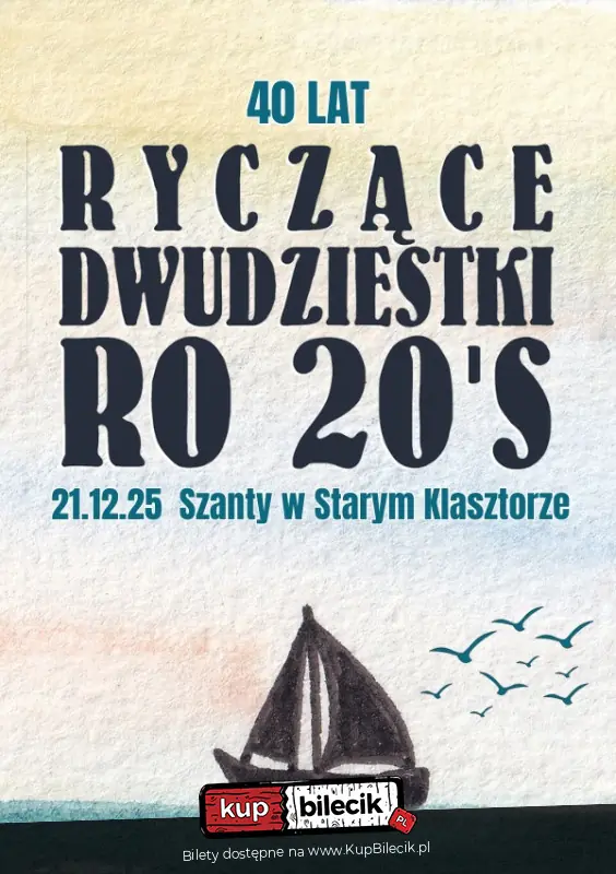 W oczekiwaniu na festiwal "Szanty we Wrocławiu 2026" zapraszamy na spotkanie z jednym z najważniejszych przedstawicieli polskiej sceny szantowej. 21 grudnia w Sali Gotyckiej w Starym Klasztorze zaśpiewają dla nas Ryczące Dwudziestki!
