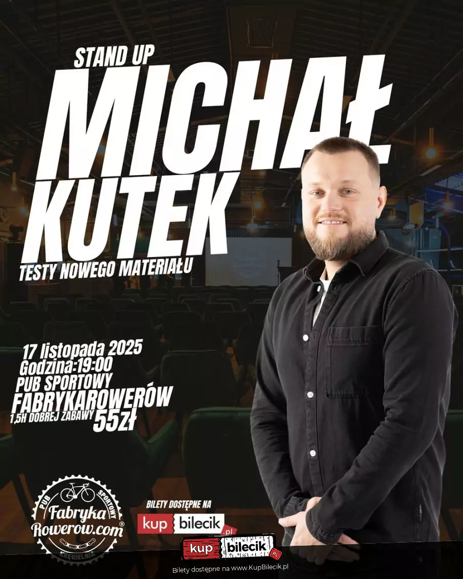 Michał Kutek - z wykształcenia prawnik, od trzech lat postępuje wbrew woli rodziców, coraz silniej ciągnąc w stronę stand-upu. Michał prezentuje inteligentny humor i dobrze skonstruowane żarty. Cały czas szuka, głównie siebie na scenie. Nie należy do rozgorączkowanych, biegających po scenie spoconych dzików. Trochę w nim goryczy i rozczarowania sobą oraz światem. Podoba mu się to. Aktywnie działa na scenie poznańskiej. Zdobywca III miejsca na tegorocznym Antrakt Stand-Up Festiwalu, członek grupy Stand-up Polska.
