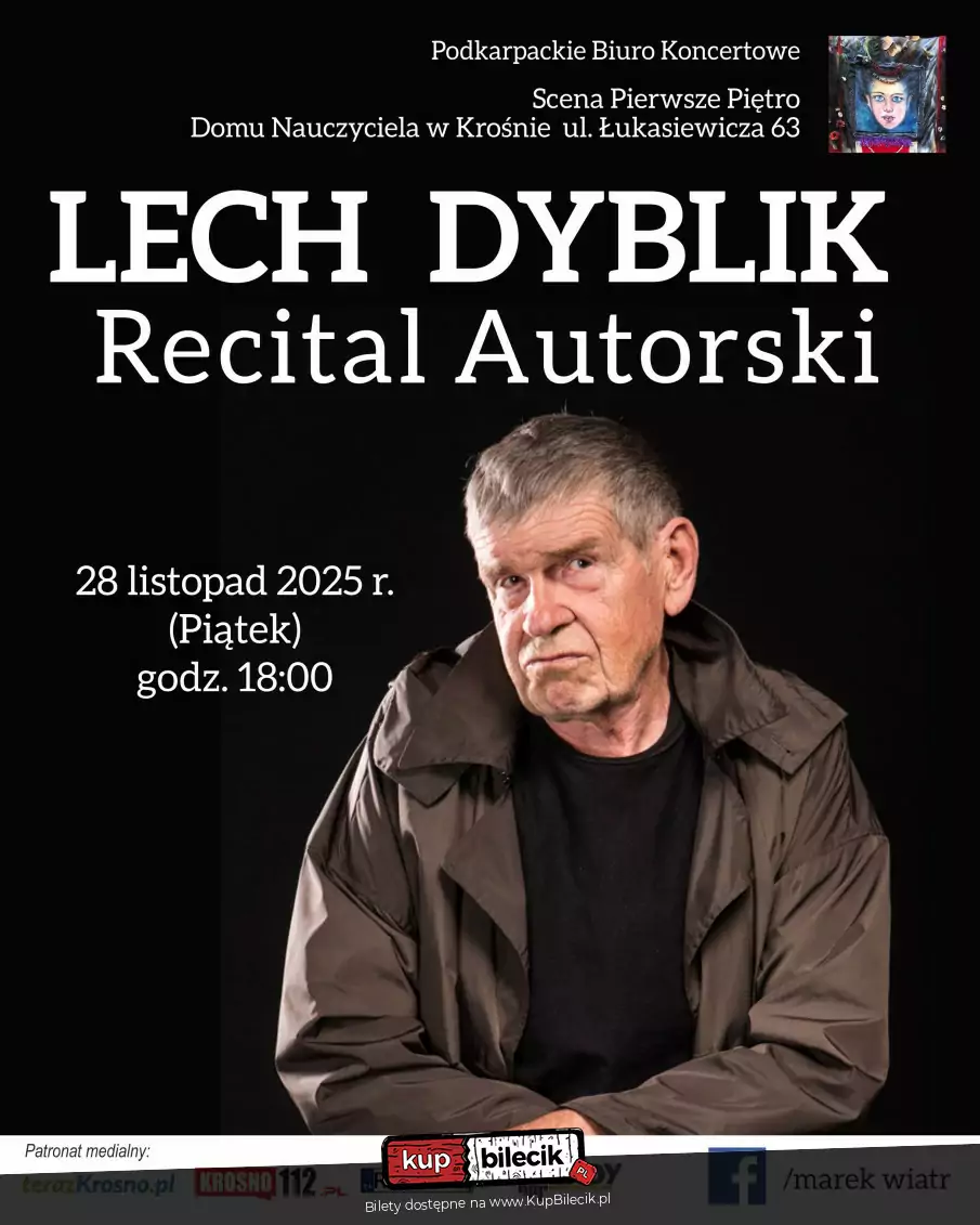Koncert wybitnego aktora Lecha Dyblika w którym usłyszymy najpiękniejsze utwory oraz anegdoty z życia teatru i filmu. Jest Absolwentem PWST w Krakowie (1981). W latach 1981-1987 był zatrudniony w Teatrze Narodowym w Warszawie. Od 2010 grał postać złomiarza-filozofa Kazimierza Badury w serialu komediowym Świat według Kiepskich, w którym to wcześniej grał różne role epizodyczne. W 2011 roku wydał płytę pt. Bandycka dusza, zaś w 2012 Dwa brzegi.