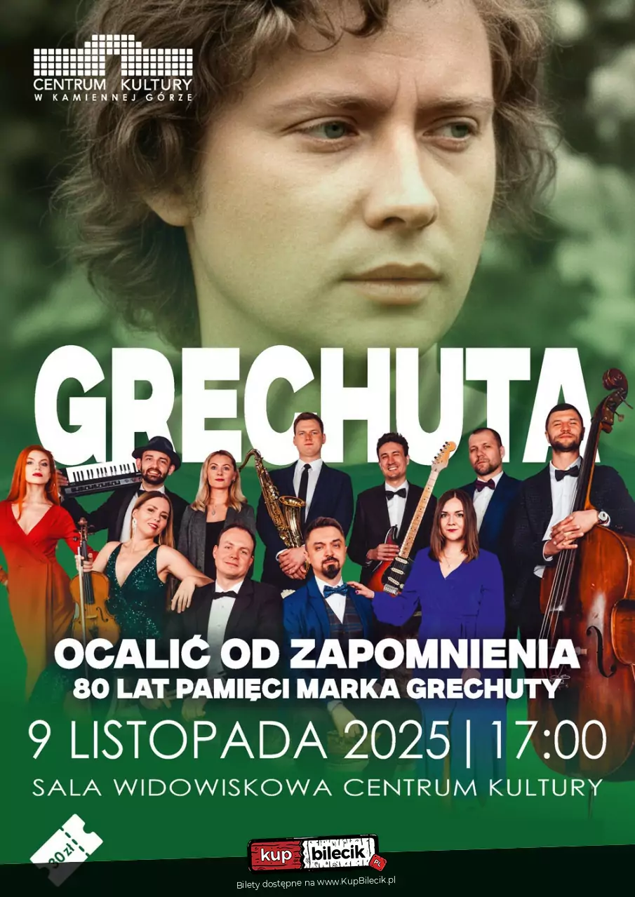 Centrum Kultury w Kamiennej Górze oraz artyści SCENY POD REGAŁEM zapraszają serdecznie na wyjątkowy, sentymentalny koncert z okazji jubileuszu 80 urodzin wielkiego mistrza, MARKA GRECHUTY.
