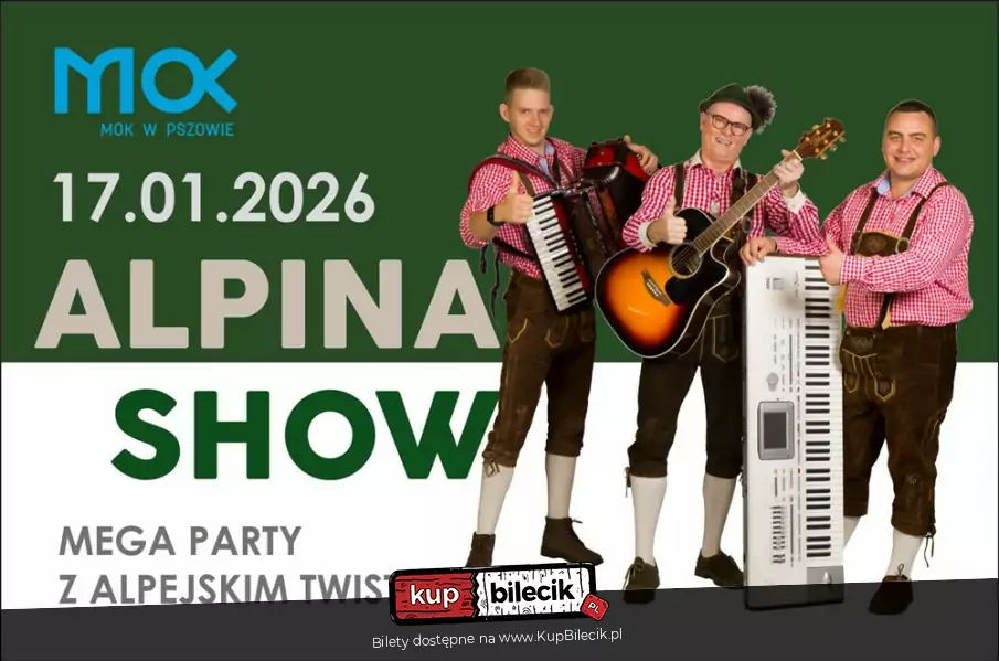 Zapraszamy na wyjątkowy koncert zespołu Alpina Show, który odbędzie się 17 stycznia o godzinie 18:00 w Miejskim Ośrodku Kultury. Czeka Was energetyczne muzyczne show pełne alpejskiego klimatu, dobrego humoru i świetnej zabawy! Alpina Show to formacja założona w 2022 roku przez Piotra Fesztera.