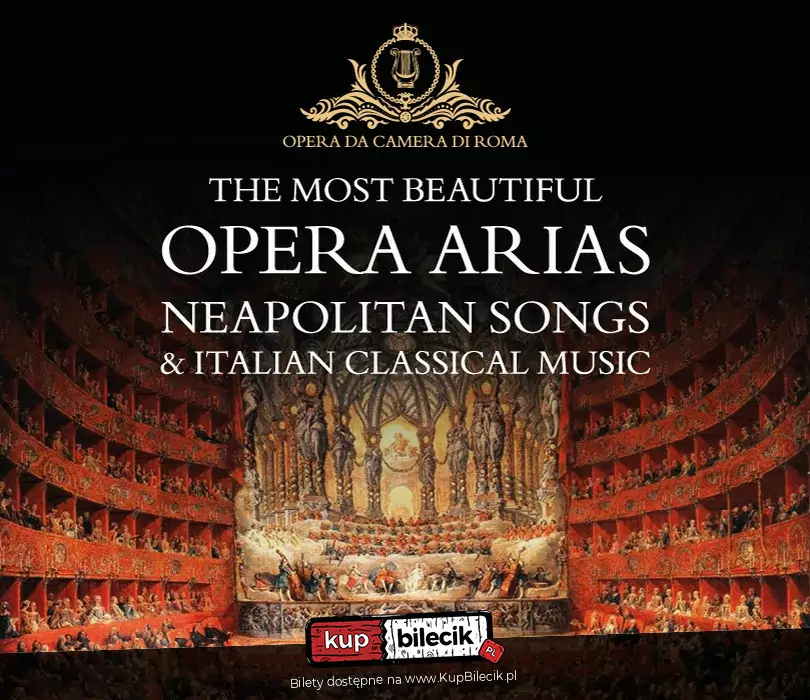 Premiera tego wyjątkowego wydarzenia odbyła się w 2014 roku w jednej z najpiękniejszych świątyń Rzymu - Basilica Santa Maria in Cosmedin. Od tego czasu koncert pozostaje w stałym repertuarze Opery i został okrzyknięty jednym z najlepszych koncertów operowych w Rzymie ostatniej dekady. W repertuarze koncertu znajdują się największe perły włoskiej opery i muzyki neapolitańskiej - niezapomniane arie i pieśni, które na przestrzeni lat stały się symbolem włoskiego temperamentu, pasji i romantyzmu. Usłyszą Państwo utwory takich mistrzów jak: Giacomo Puccini, Giuseppe Verdi, Gaetano Donizetti, Gioachino Rossini, a także legendarne pieśni neapolitańskie - w tym O sole mio, Funiculì Funiculà, Torna a Surriento i wiele innych. Na scenie wystąpią znakomici soliści Opera da Camera di Roma - artyści rzymskich scen operowych, których kunszt wokalny i muzykalność od lat zachwycają publiczność w całej Europie przy akompaniamencie fortepianu.