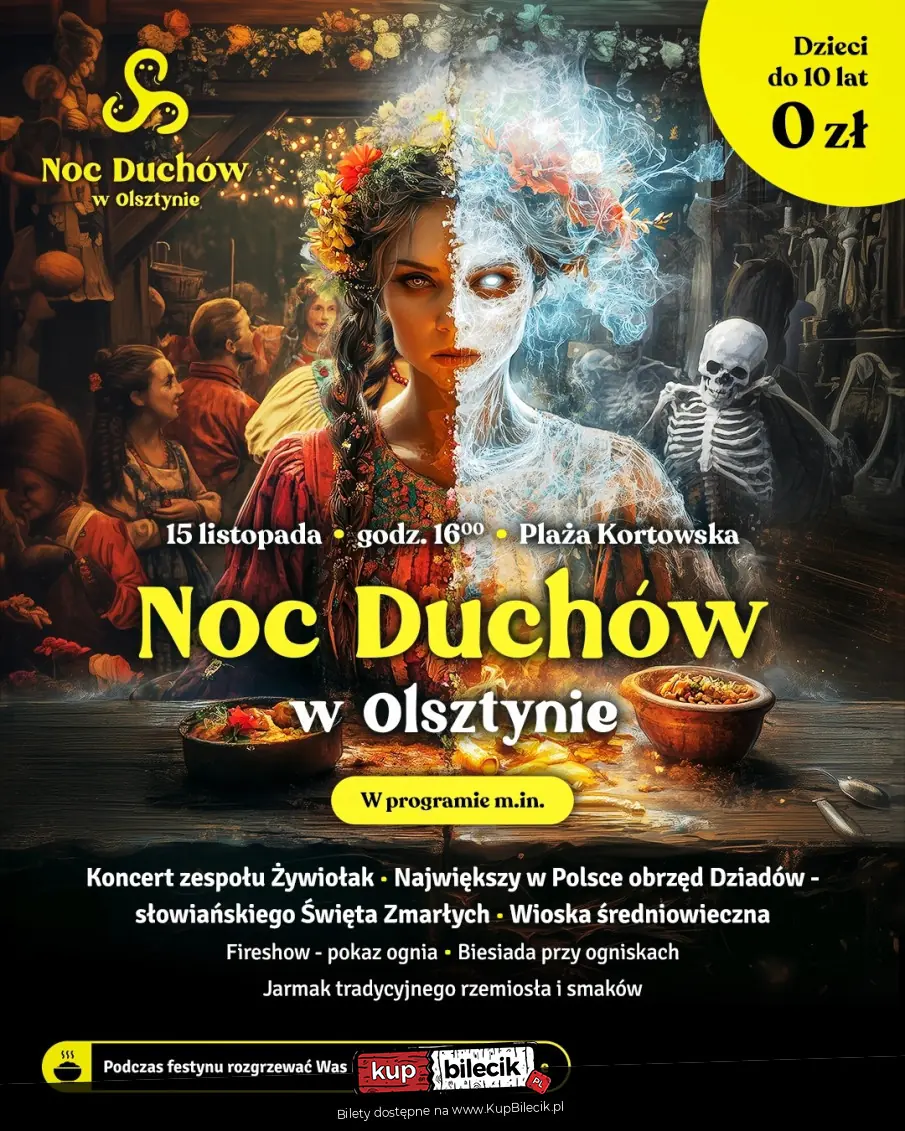 Ogień, bębny i dawne tradycje, które budzą się do życia. Druga edycja Nocy Duchów zaprasza nad jezioro Kortowskie na wyjątkowy wieczór pełen muzyki, historii i emocji. W blasku ognisk i zapachu dymu przeniesiemy się w świat słowiańskich obrzędów i opowieści, które od wieków towarzyszyły naszym przodkom.
