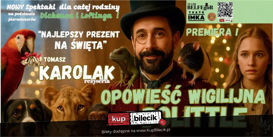 "Opowieść Wigilijna Dr Dolittle" to pełna emocji, humoru i muzyki historia o przyjaźni, odkupieniu i mocy świątecznego dobra - tym razem z udziałem żywych zwierząt! W magicznej atmosferze Bożego Narodzenia Dr Dolittle spotka ducha dawnych świąt i odkryje, że nawet najmniejsze stworzenie może odmienić świat.
