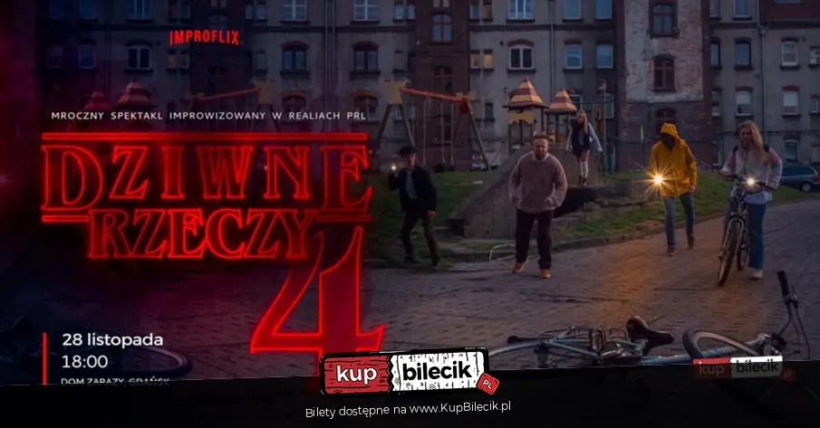 Dziwne Rzeczy - mroczny spektakl improwizowany w realiach PRL. Spektakl improwizowany Dziwne Rzeczy jest inspirowany serialem "Stranger Things" i latami 80' Polski PRL. Zabierzemy Cię w tajemniczą podróż do Polski lat 80', w której 13-latkowie stawią czoła niewyjaśnionym zjawiskom, złu, które objawia się w najróżniejszych postaciach, materialnych i metafizycznych. Będzie trochę strasznie, trochę dziwnie i trochę śmiesznie.