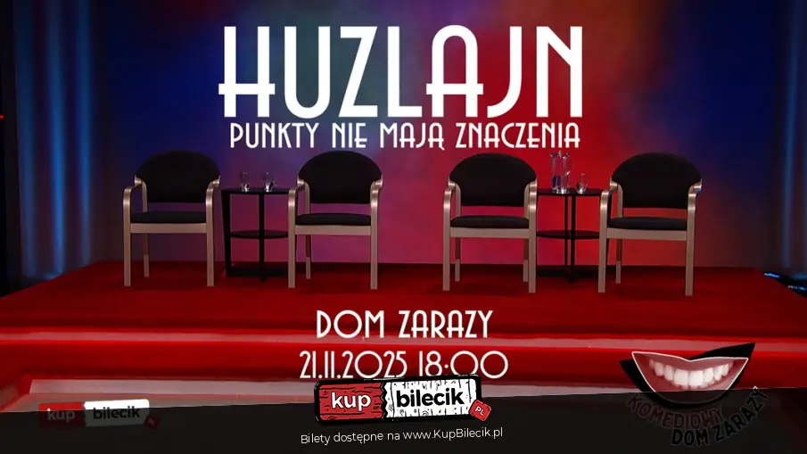 Witamy w programie Huzlajn, gdzie wszystko jest zmyślone a punkty nie mają znaczenia. Tak jak ogłoszenie o pracę, gdzie jedynym plusem są owocowe czwartki. W tym programie uczestnicy zagrają improwizowane sceny, z których każda ma swoje zasady. Po każdej scenie otrzymają punkty, które NA PEWNO wyłonią zwycięzcę. Publiczność proponuje inspiracje, które mogą pomóc uczestnikom, lub wręcz przeciwnie. W tym odcinku zagrają: Anna Mularska, Tomasz Komorowski, Kuba Mielas, oraz Michał Okoniewski.