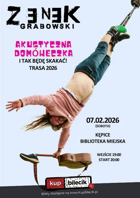 "Akustyczna Domóweczka" to cykl koncertowy, na którym usłyszycie mnóstwo utworów z przekroju twórczości Zenka w wersji akustycznej. Wpadajcie na to bliskie spotkanie w atmosferze domówki. To trzeba zobaczyć i przeżyć NA ŻYWO! Koncert Zenek Grabowski "Akustyczna Domóweczka" I Tak Będę Skakać Trasa 2026.