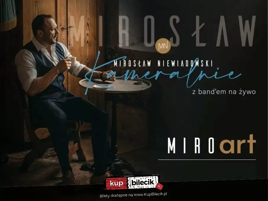 Jeden z najwybitniejszych tenorów polskiej sceny muzycznej, czarujący mocną i ciemną barwą głosu. Pozwoliło to artyście w doskonały sposób połączyć muzykę klasyczną z rozrywkową. W najnowszym projekcie "Mirosław Niewiadomski kameralnie", artysta przeniesie w świat największych i najbardziej znanych utworów, takich jak "Belle" z Dzwonnika z Notre-Dame, czy "My way" Franka Sinatry, dzięki którym zdobył największą popularność w Polsce. Twórczość Elvisa Presleya czy Franka Sinatry sprawiła, że artysta doskonale obrał własną ścieżkę zawodową. Koncerty z udziałem Mirosława Niewiadomskiego są niezwykłe i każdy z nich zapada w pamięć… od łez śmiechu, momentami wzruszenia, po radość i wspólną zabawę. Taki właśnie będzie najnowszy projekt artysty, z wyjątkowym akcentem, bo Mirosław Niewiadomski PO RAZ PIERWSZY NA SCENIE zagra na instrumencie.