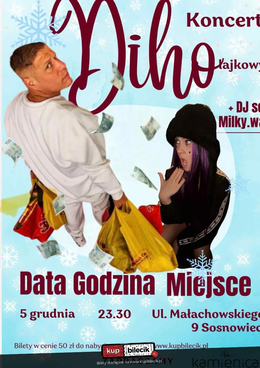 Ho, ho, ho! Mikołajki zbliżają się wielkimi krokami, a my mamy dla Was coś specjalnego! Przygotujcie się na szaloną noc pełną rapowych rytmów, bo na scenie wystąpi raper "Diho"! A to nie wszystko - Mikołajem tej nocy będzie sam raper! Do zabawy dołączy również DJ Milky.wav, która porwie Was w wir muzycznych szaleństw!