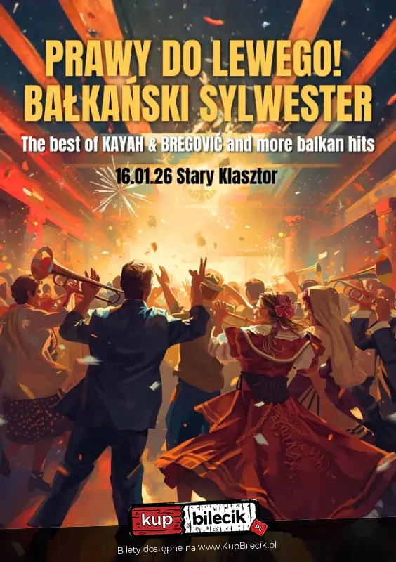 BAŁKAŃSKI SYLWESTER to nic innego jak świętowanie Nowego Roku według kalendarza juliańskiego, którym posługują się wierni obrządku greckokatolickiego oraz prawosławnego. Zgodnie z tym kalendarzem Boże Narodzenie, a więc i Nowy Rok, wypadają 13 dni później niż w kalendarzu gregoriańskim. Pojawia się więc doskonała okazja do świętowania Sylwestra po raz drugi! W piątek 16 stycznia zapraszamy do Starego Klasztoru na karnawałową zabawę przy dźwiękach przebojów z repertuaru KAYAH i GORANA BREGOVIĆA oraz największych hitów muzyki bałkańskiej.