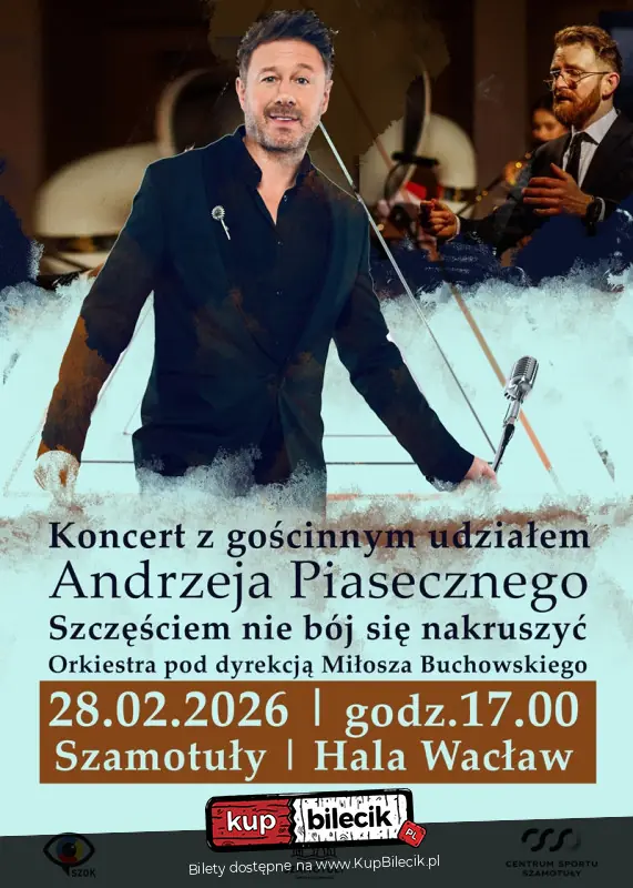 Serdecznie zapraszamy na koncert Orkiestry pod dyrekcją Miłosza Buchalskiego z gościnnym udziałem Andrzeja Piasecznego "Szczęściem nie bój się naruszyć"