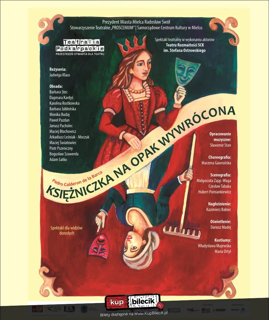 Teatr "Rozmaitości" im. Stefana Ostrowskiego przygotował dla wiernej publiczności kolejną premierę. Tym razem doświadczona ekipa aktorsko-reżyserska wzięła na warsztat sztukę "Księżniczka na opak wywrócona" Pedro Calderona de la Barca. Autorem sztuki jest barokowy poeta i dramaturg hiszpański. Kilka jego sztuk na stałe weszło do repertuaru teatrów na całym świecie, m.in. "Życie jest snem", czy "Wielki teatr świata". Także spektakl "Księżniczka na opak wywrócona" często grywana jest w teatrach. Dlaczego? Bo publiczność kocha namiętności, intrygi, pojedynki, gry pozorów, zwroty akcji, zabawne qui quo pro... czyli stare, ale jare, sprawdzone konwencje teatralne.